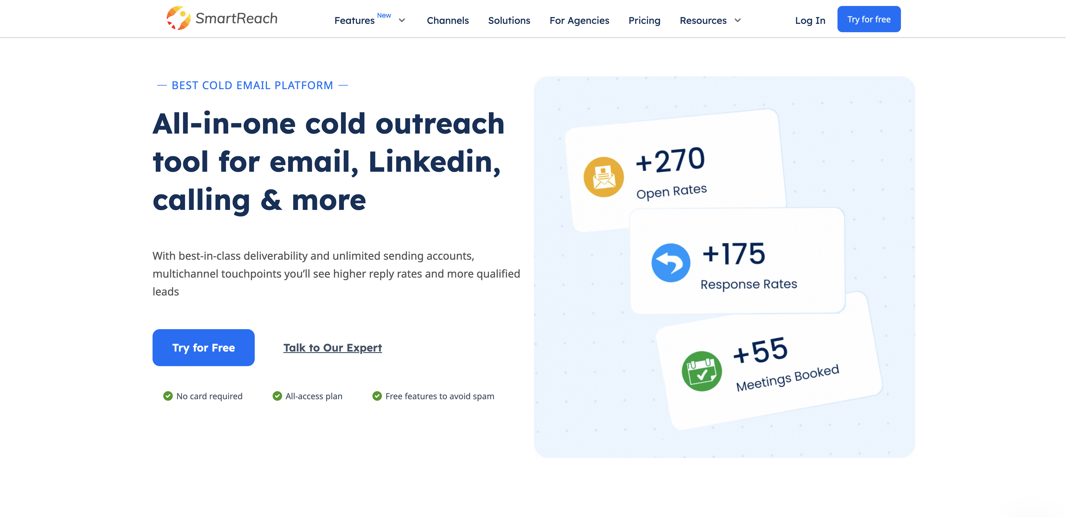SmartReach is a marketing automation platform that lets you reach customers across numerous channels, including email, social, SMS, and phone calls. It has a shared inbox that aids teams in collaborating, an AI assistant that can provide recommendations for content, and integrations with several CRM platforms.