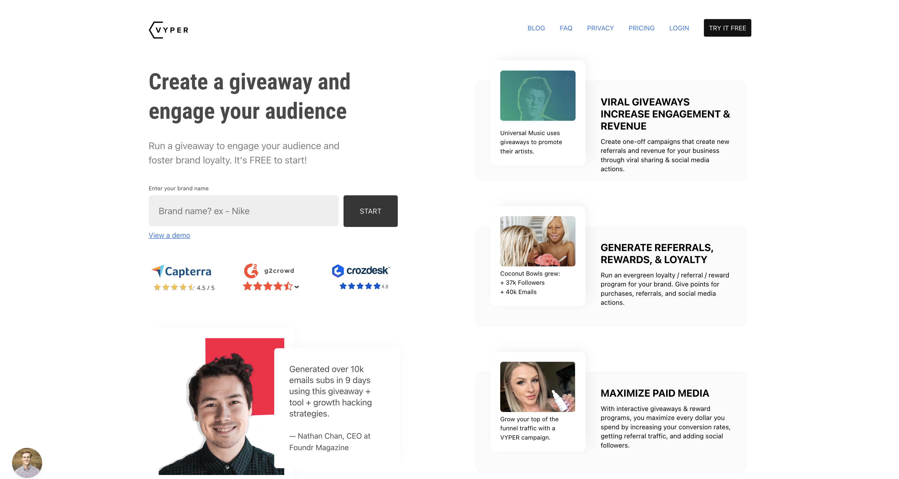 Vyper makes it easy to implement gamification into your marketing program by creating engagement campaigns and giveaways that motivate prospective customers to interact with your business’s offerings. Create appealing workflows, returning customer programs, and pages that can help your company turn prospects into returning customers.