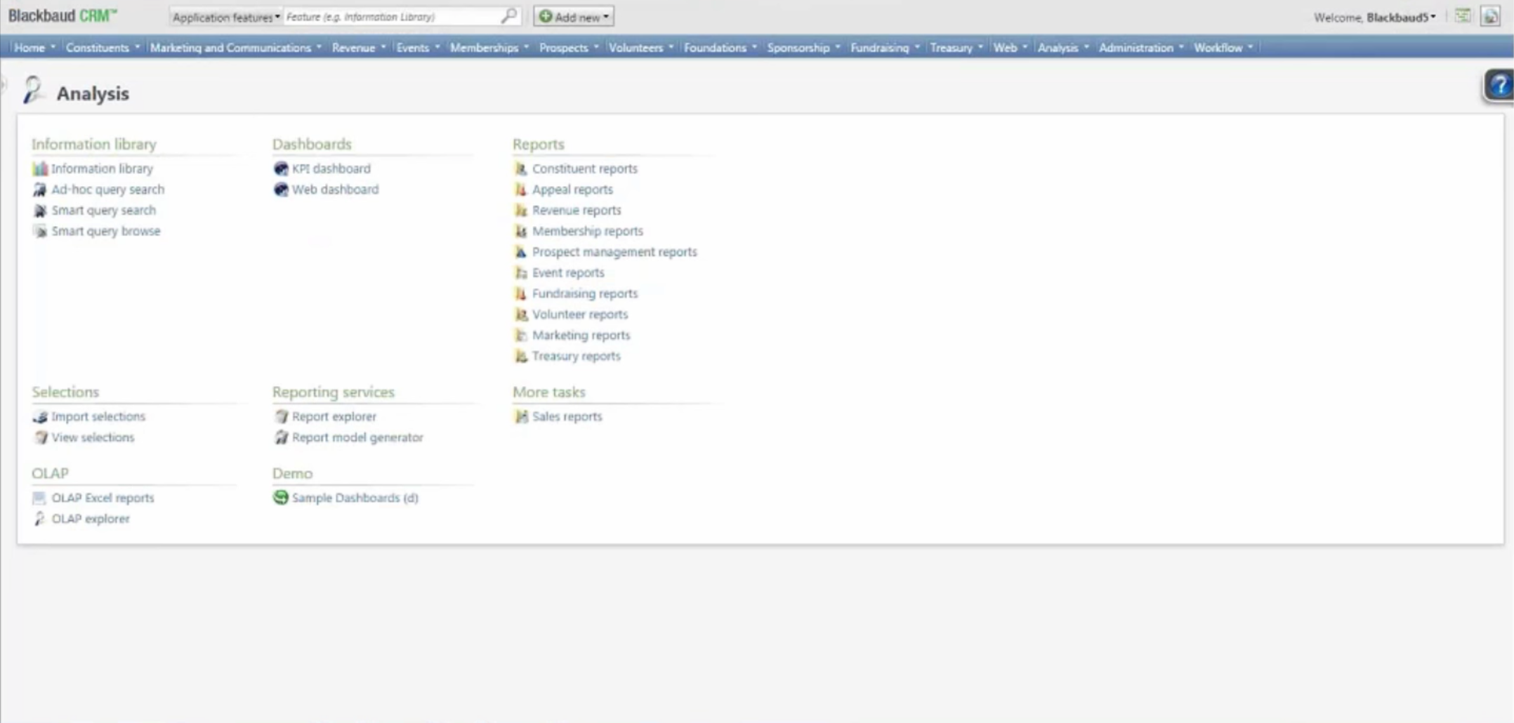 - Reporting and analytics: View, track, and present quantitative data about constituents, fundraising, engagement, etc.