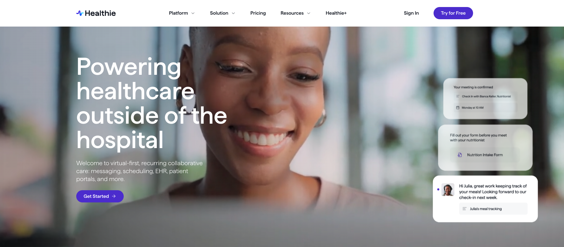 - Healthie: Healthie is an all-in-one platform designed for wellness and health professionals. It’s built as a virtual-first solution and offers tools for telehealth, client engagement, and practice management. There’s a free starter plan, and paid plans start at $49 per month.
