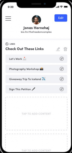 SleekBio lets you share links, embed video and audio, accept bookings, collect email signups, and more.