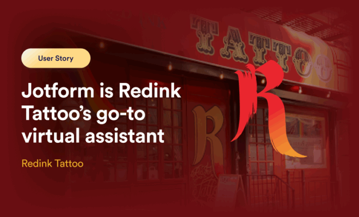 Redink Tattoo decided to switch to Jotform to digitize its process and cut down on administrative tasks — relying on Jotform products to perform these tasks instead.