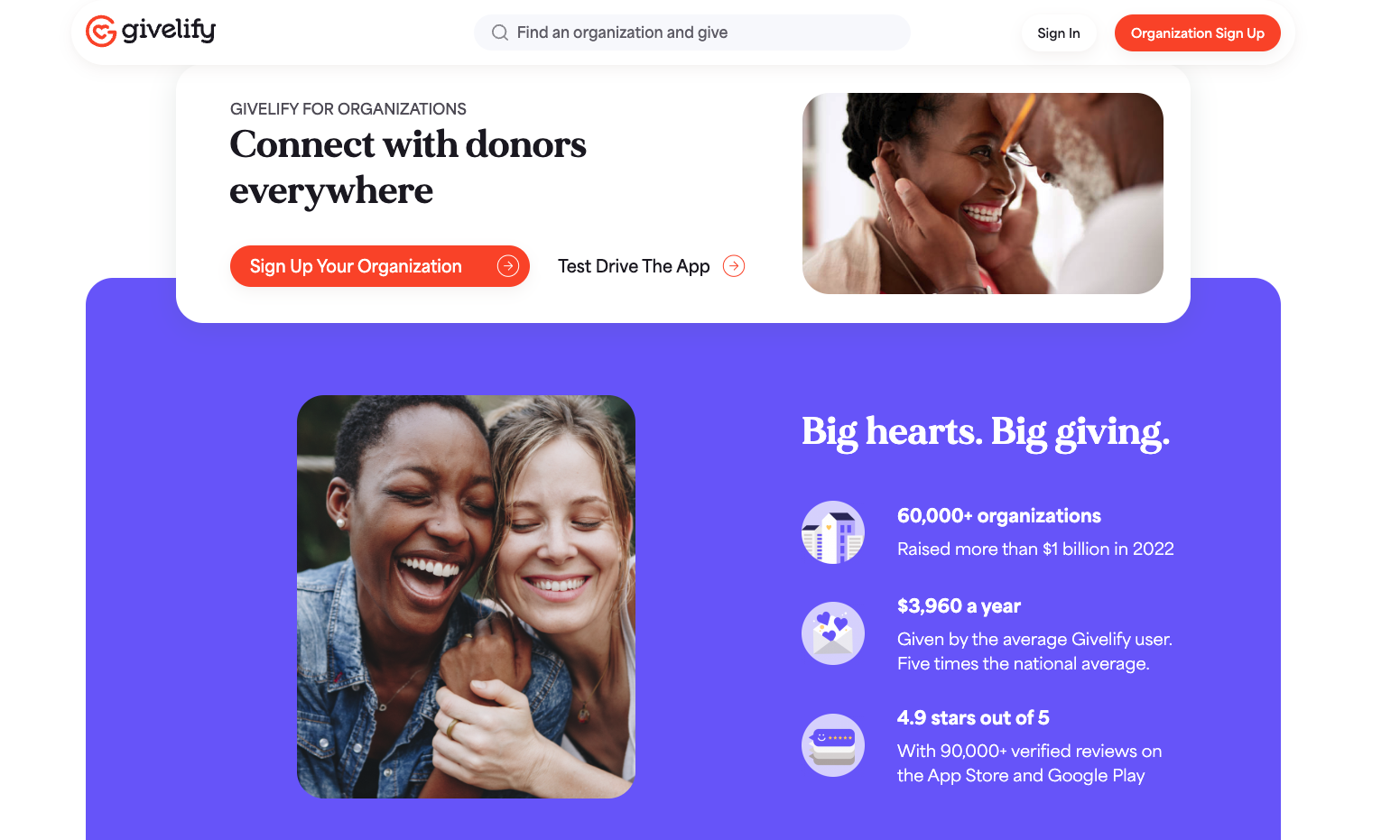 Givelify is a donation app for churches and nonprofits of all sizes. It’s easy to set up and even has custom branding options to create a seamless experience for the user. Givelify enables you to raise money for specific causes or initiatives as well as send thank-you notes to donors. The app also has built-in donor management and analytics tools.