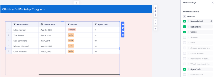 For the children’s ministry program, Poppen uses filters to display responses from volunteers based on the groups they work with — such as babies, toddlers, or young children in a specific age range. This option is particularly important since the children’s ministry curriculum — not to mention the needs of volunteers and participants — varies for each age group.