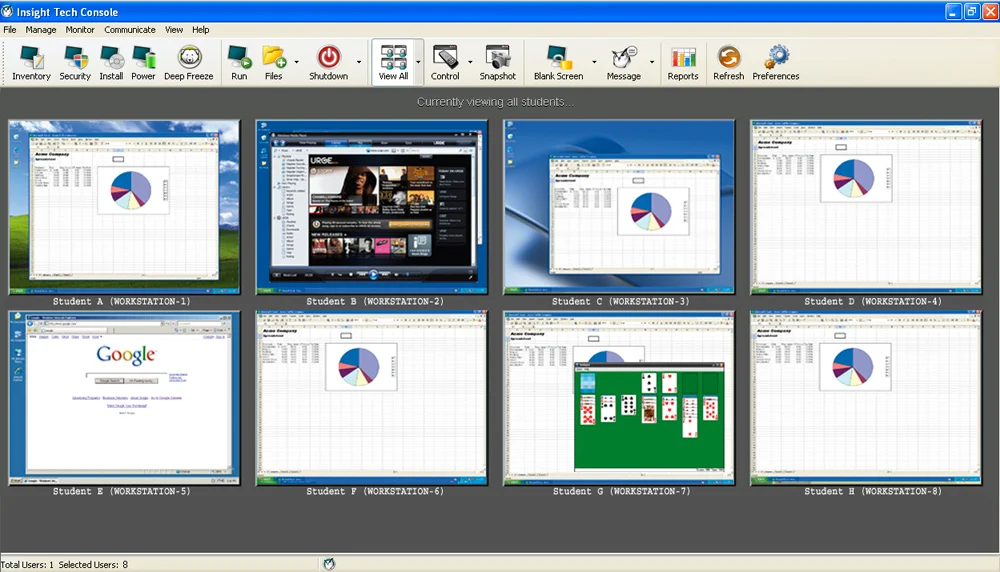 Faronics Insight allows teachers to manage large classrooms while engaging students in a collaborative learning environment. This can be done via on-site, remote, or hybrid classrooms. Teachers can share their screens, monitor student screens, administer tests remotely, and communicate with students using audio and chat features.
