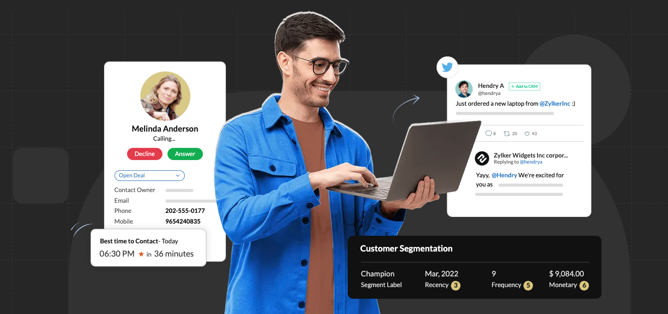 Trusted by more than 250,000 businesses in 180 countries, sales software Zoho CRM believes in customer-focused processes that help users connect with and retain best-fit clientele, no matter where they’re located. With Zoho CRM, you can identify and capture leads that will convert, get email insights, create dashboards to analyze trends, generate quotes and invoices, and make more accurate predictions about future transactions — everything you need to increase sales and revenue.