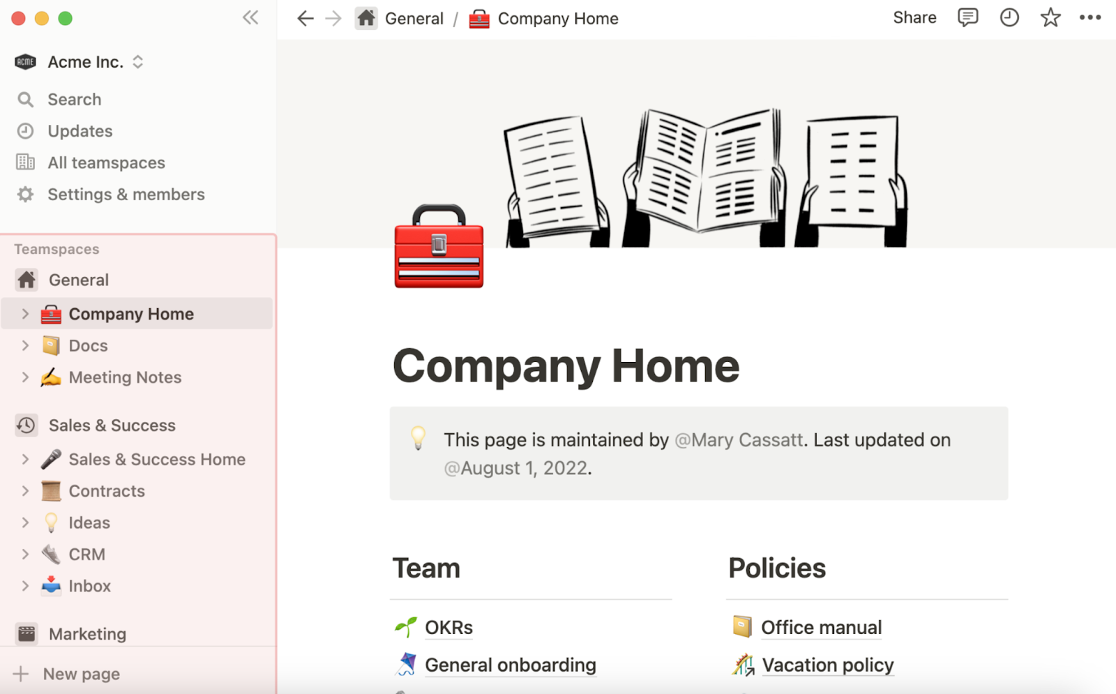 Both tools are built for collaboration. Notion’s vision of collaboration is simpler and more straightforward. It supports real-time collaborative editing; mentions, tagging, and comments; version histories; and multiple permission levels.