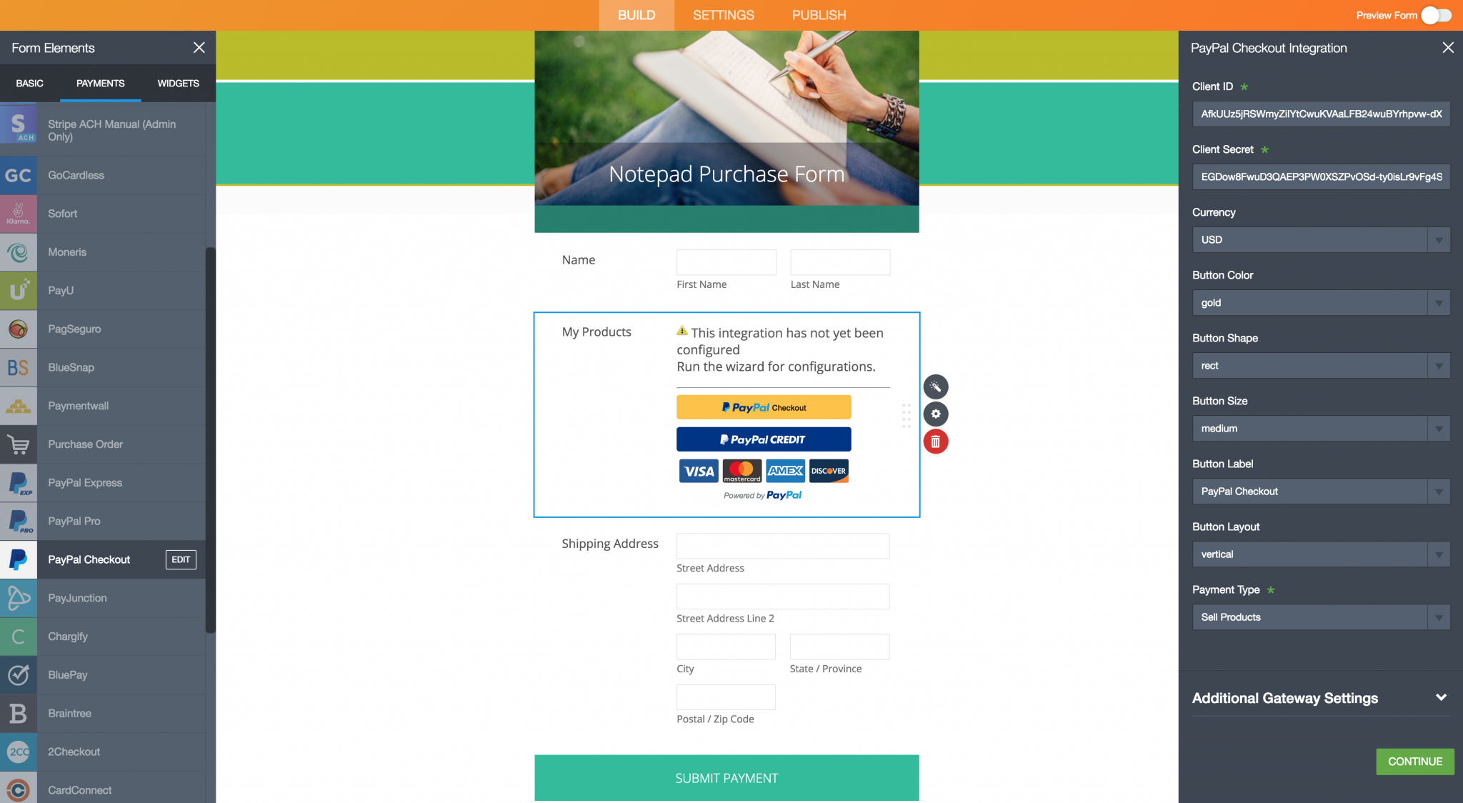 - Connect your PayPal account by entering your Client ID and Client Secret.