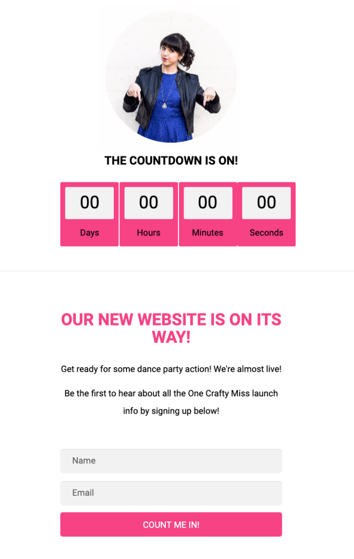 Website redesigns can be seen as boring and technical. Some clever copy on a coming soon page is a proven way to spice up the launch (or relaunch). The example above doesn’t have a ton of copy either, but “get ready for some dance party action” is enough to get people’s attention.