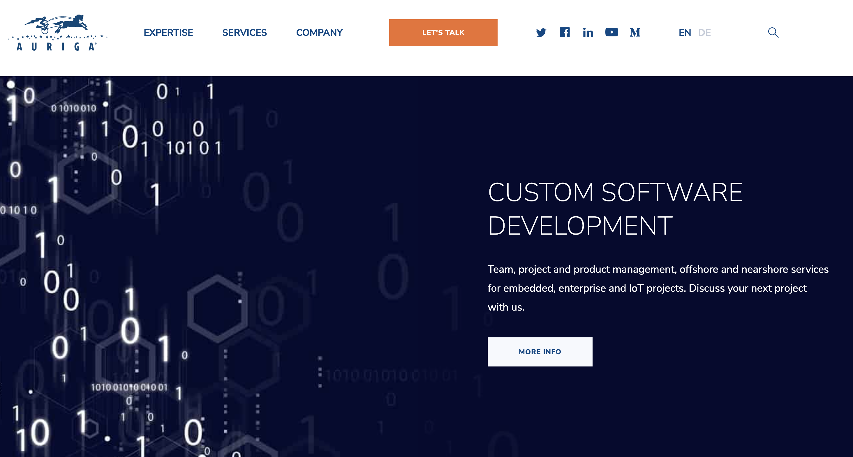 Instead of a “Contact Us” page, Auriga uses a “Let’s talk” button in the top menu to open a short contact form in a popup. The form itself is straightforward, allowing visitors to submit their information and inquiry in seconds.