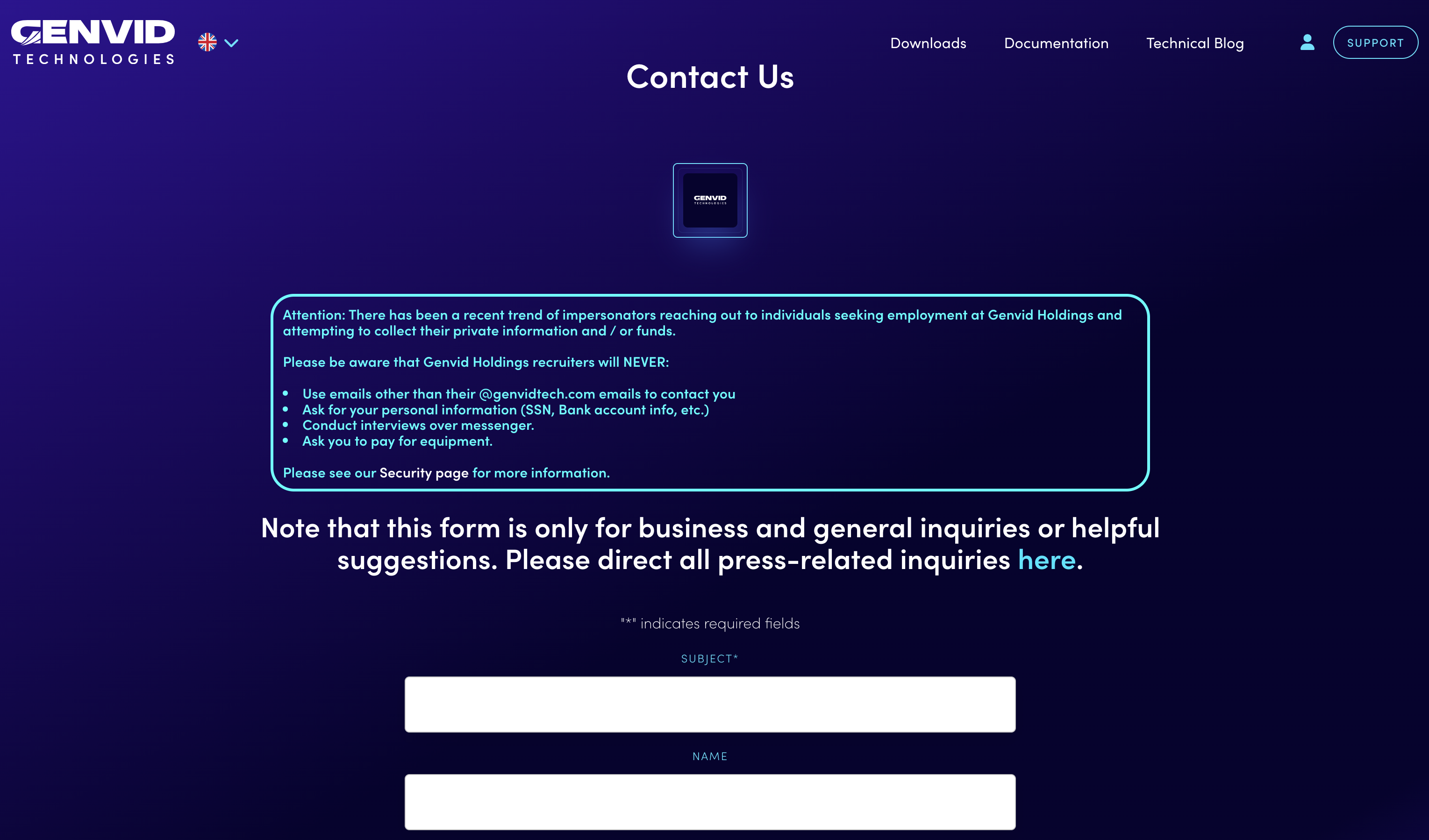 Going the extra mile to protect customers, Genvid lists a lengthy disclosure at the top of their contact form to help whitelist the company’s replies and block spammers.