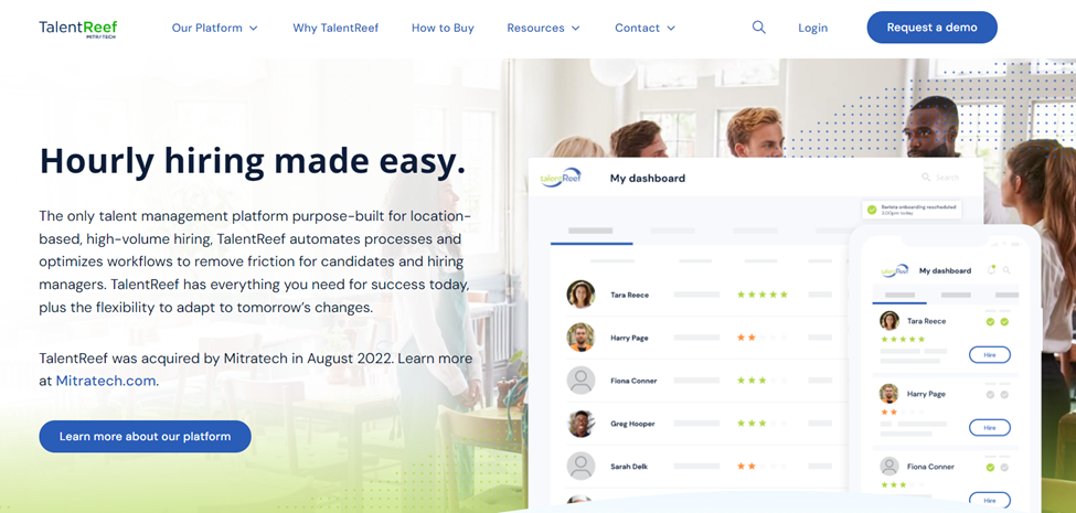 TalentReef is a CRM and talent management solution that enables recruiters to find candidates for hourly positions. Features include applicant tracking, text-based communication, candidate notifications, automated interview scheduling, dashboard analytics, and much more. TalentReef also offers employee self-service tools as well as training and development tools.