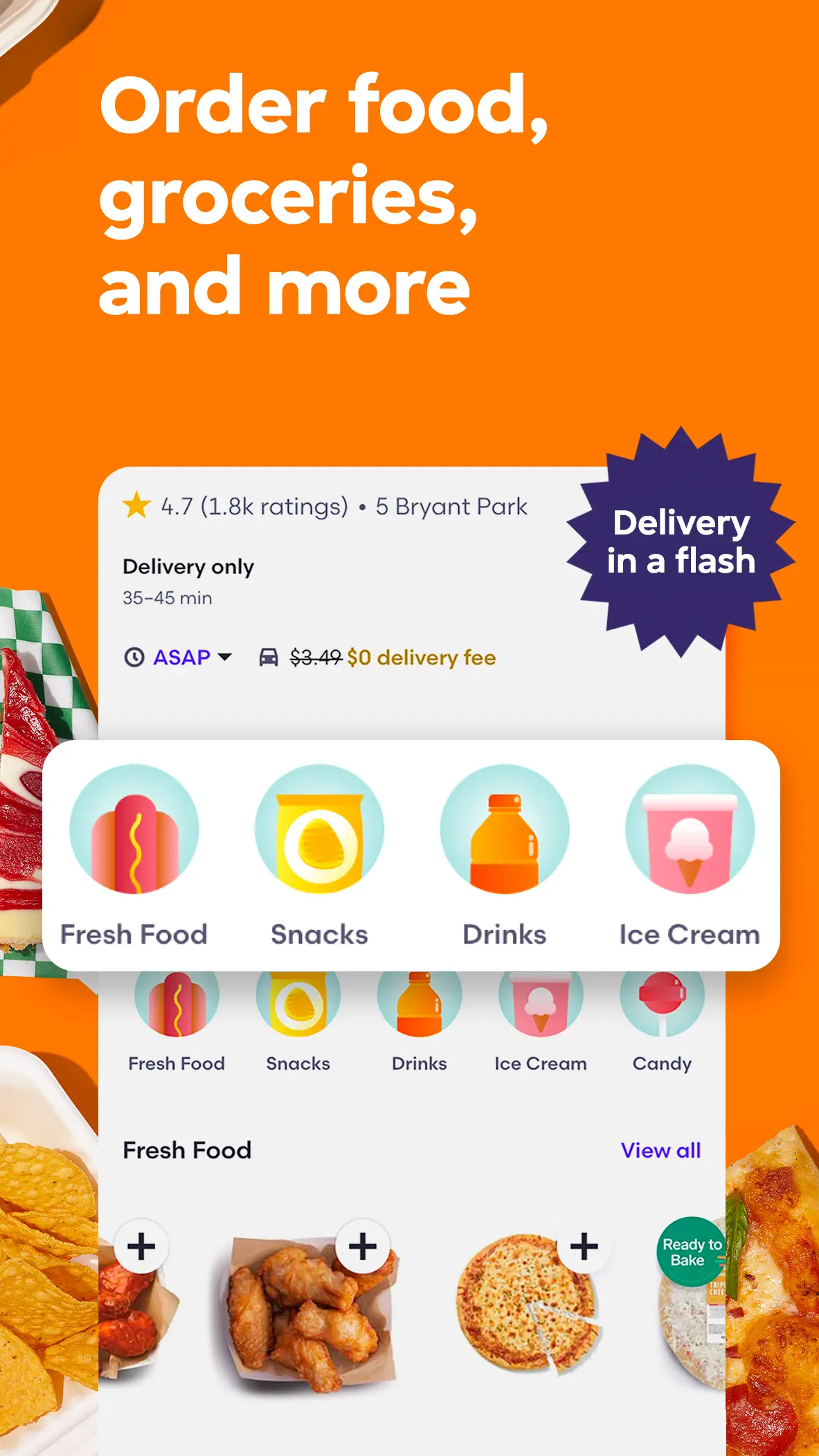 - Key features: Grocery delivery, instant cash-out, batch orders