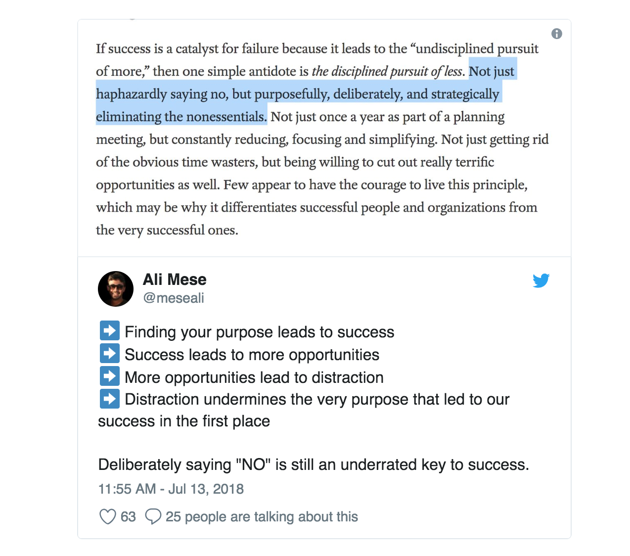 Unfortunately, when the entrepreneur eventually finds success, they must then face their biggest challenge — how to say no to the massive influx of opportunities that appear in their inbox on a daily basis as a result of their success.