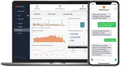 Luma Health is on a mission to modernize patient access. On the backend, administrators can check in patients, verify insurance, schedule appointments, send reminders, and capture referrals.