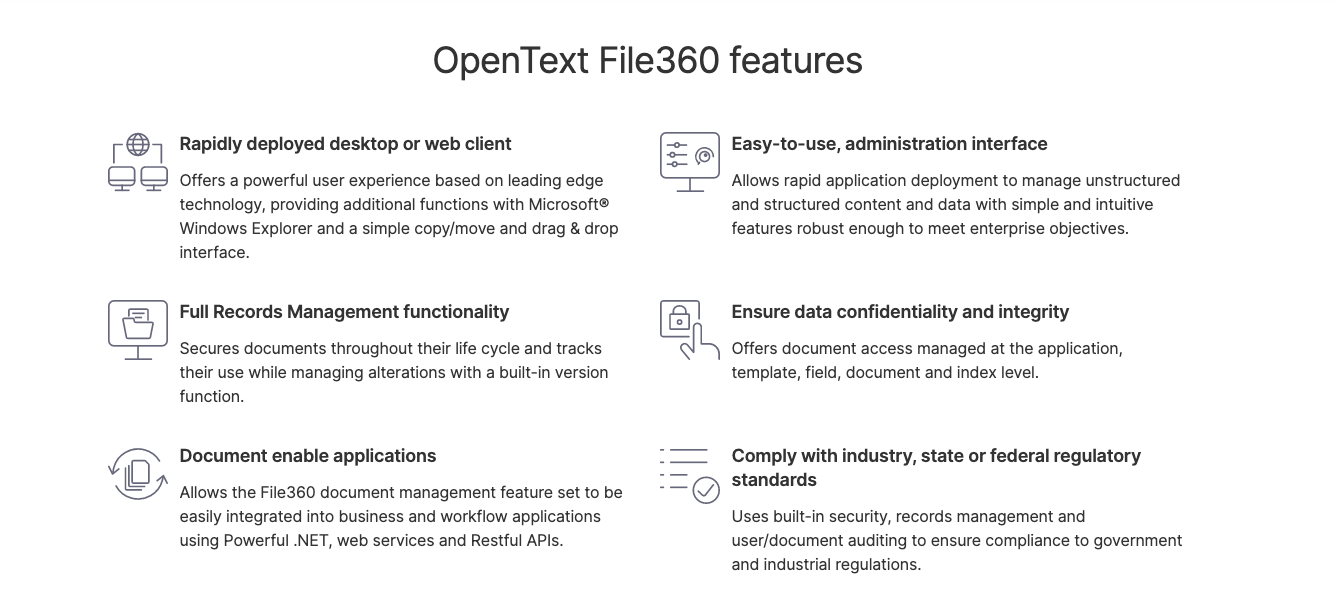 OpenText Content Cloud is another DocuShare alternative, offering a complete content repository for businesses of all sizes. It offers all of the standard document management features, including accessible cloud storage, rapid information retrieval, and integration with a range of applications. The platform also boasts advanced features like corporate information governance, artificial intelligence and machine learning, and automation.