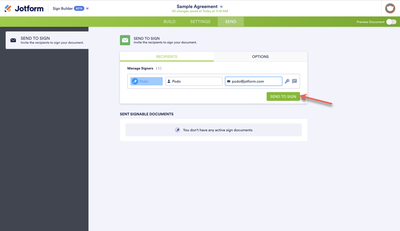 When you’re ready to send the document to signers, add your signers’ emails in the Send tab. The process is simple and easy.