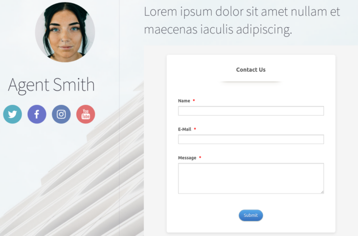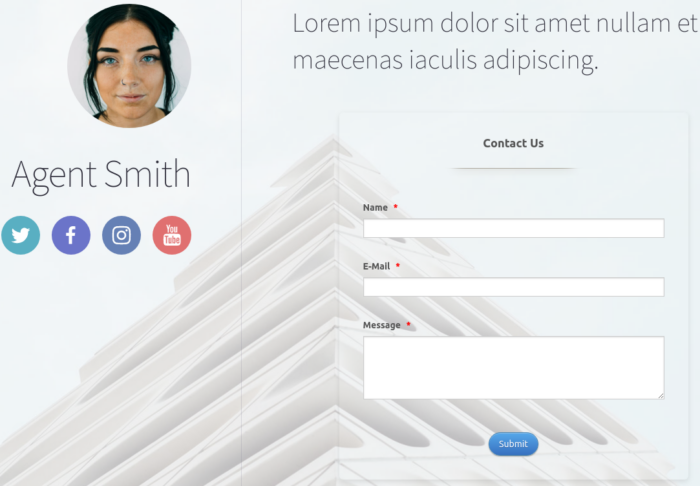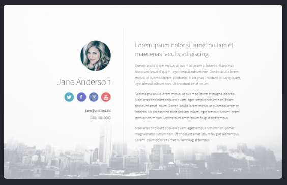 To get started in Carrd once you’ve created an account, click the big green New Site button in the upper-right corner of your dashboard. Then select a template with lots of space to add your form. This Jane Anderson template is perfect.