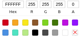 Change the colors by clicking on the white squares. In the color settings, click the red X to hide the color completely. Then click outside of the color selector to hide it.