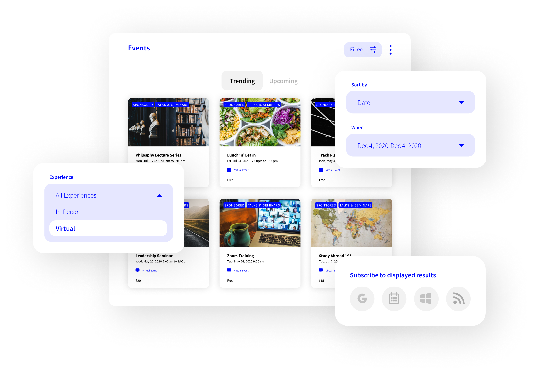 Localist allows you to create a branded events calendar, so your community can see all of your upcoming events in one place. Its Zoom integration allows users attending virtual events to join your event directly from your calendar.
