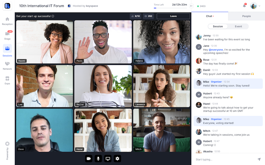 Bevy Virtual Meetup allows you to host virtual events in high definition on a reliable, low-latency network. Bevy also offers chat, Q&A, and direct messaging functionality to allow communication between attendees and organizers.
