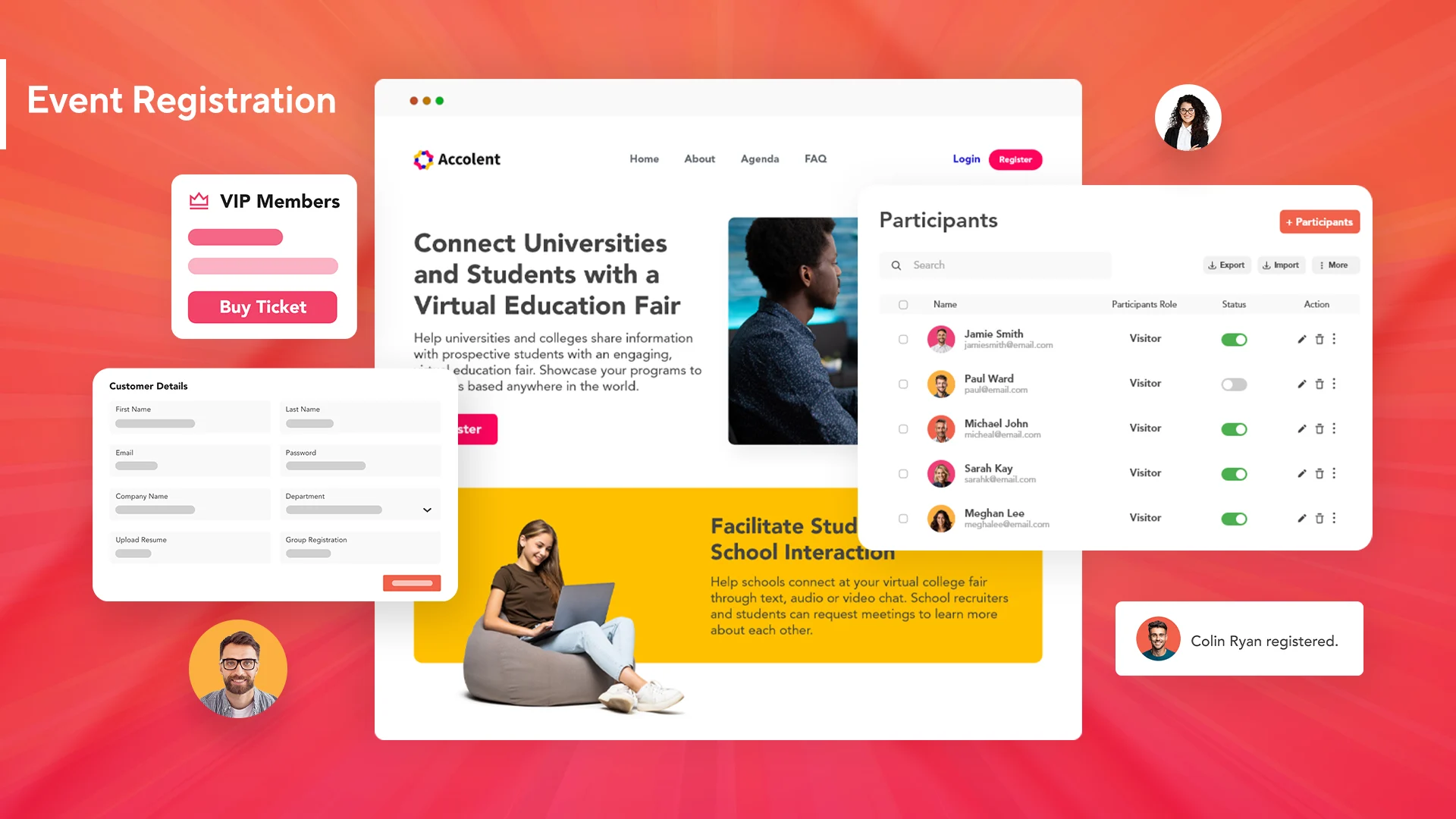 - It offers registration and ticketing features.