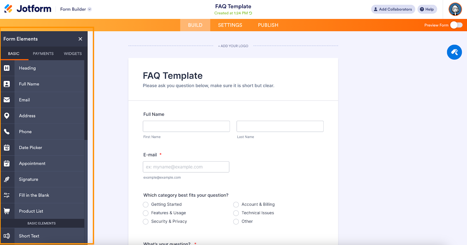 Looking to go one step further? Try building your own FAQ page with Jotform’s online form builder for seamless, interactive support experiences.