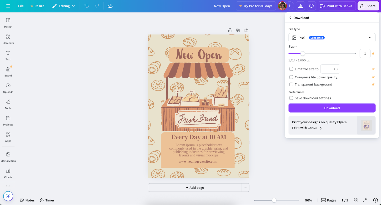 Depending on your design, you can also export your design as PowerPoint presentation files, GIFs, MP4 videos, and SVG vector files, or print on demand with Canva’s built-in printing services.