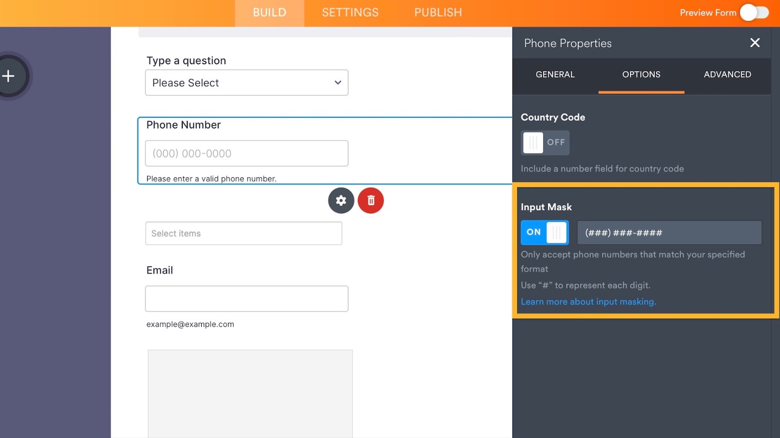 Our input masking feature helps ensure that answers in your form are consistently in a specific format.