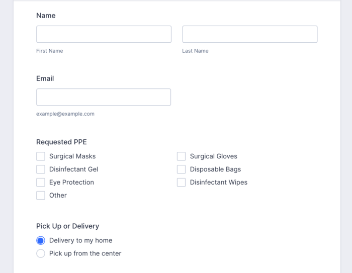 Whether you run a restaurant or storefront, you can help your customers avoid overcrowding by offering curbside pickup. This Curbside Pickup Order Form comes configured with customizable order items. You can connect it to any of Jotform’s payment partners, including Square and PayPal, so that you don’t have to worry about the customer paying once they arrive.