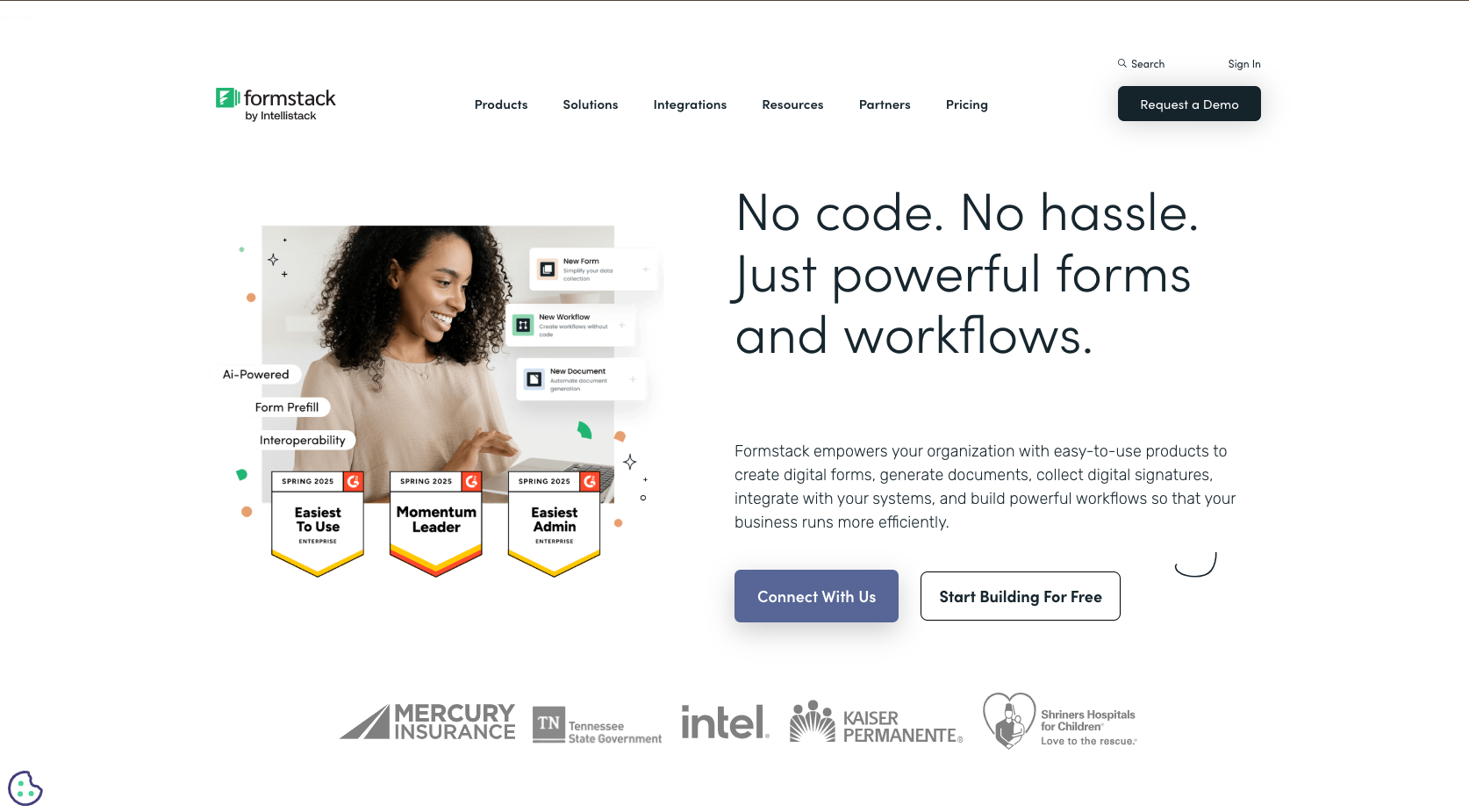 The platform also integrates with document generation, digital signature collection, and CRM tools. With over 100 integrations, including Salesforce, Microsoft 365, and HubSpot, Formstack helps unify data across your ecosystem.