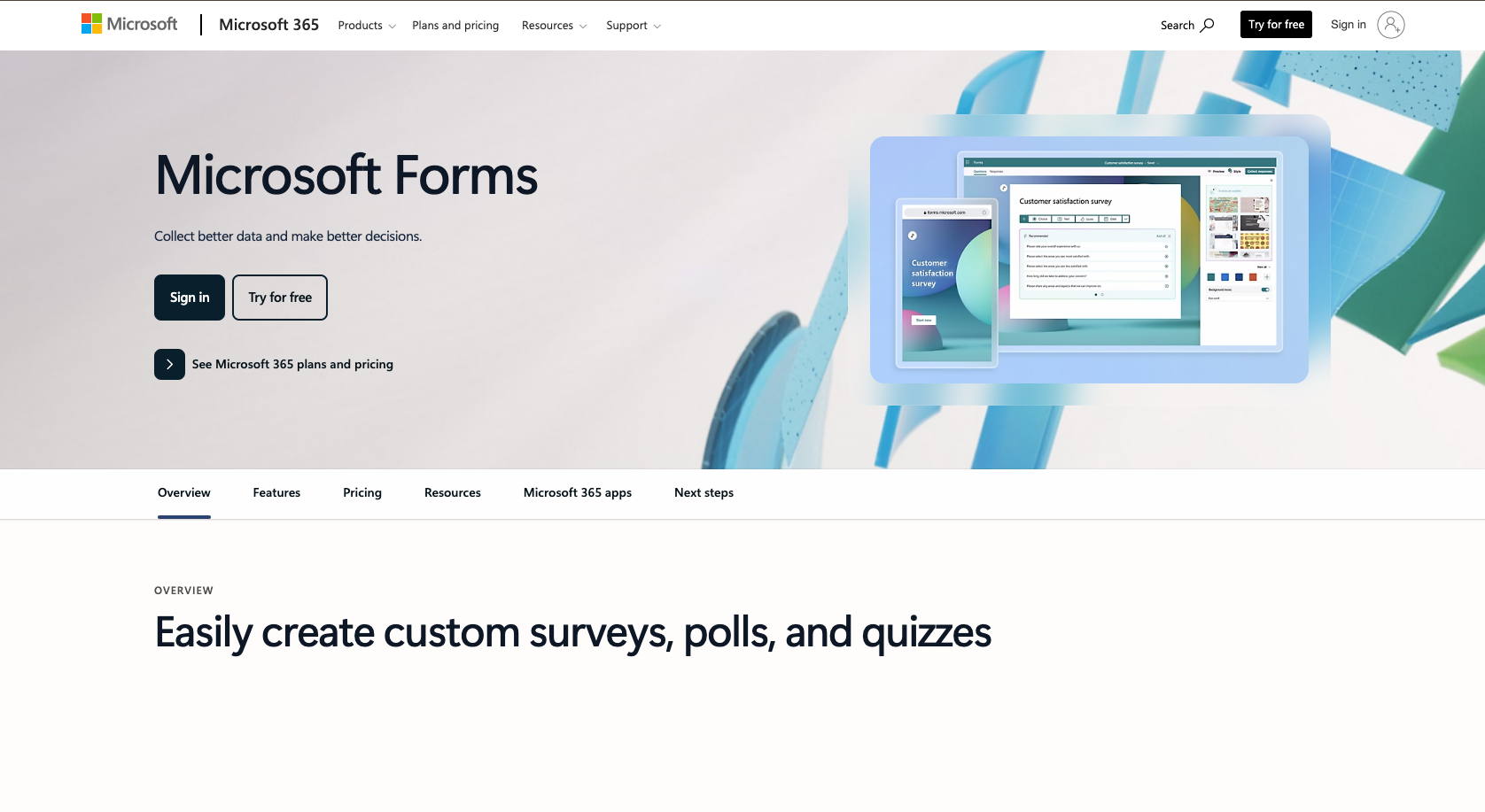 With Microsoft Forms conditional logic, you can create surveys, quizzes, and polls in minutes. The platform offers smart question suggestions, real-time visual analytics, and effortless sharing across email, websites, or Teams channels.