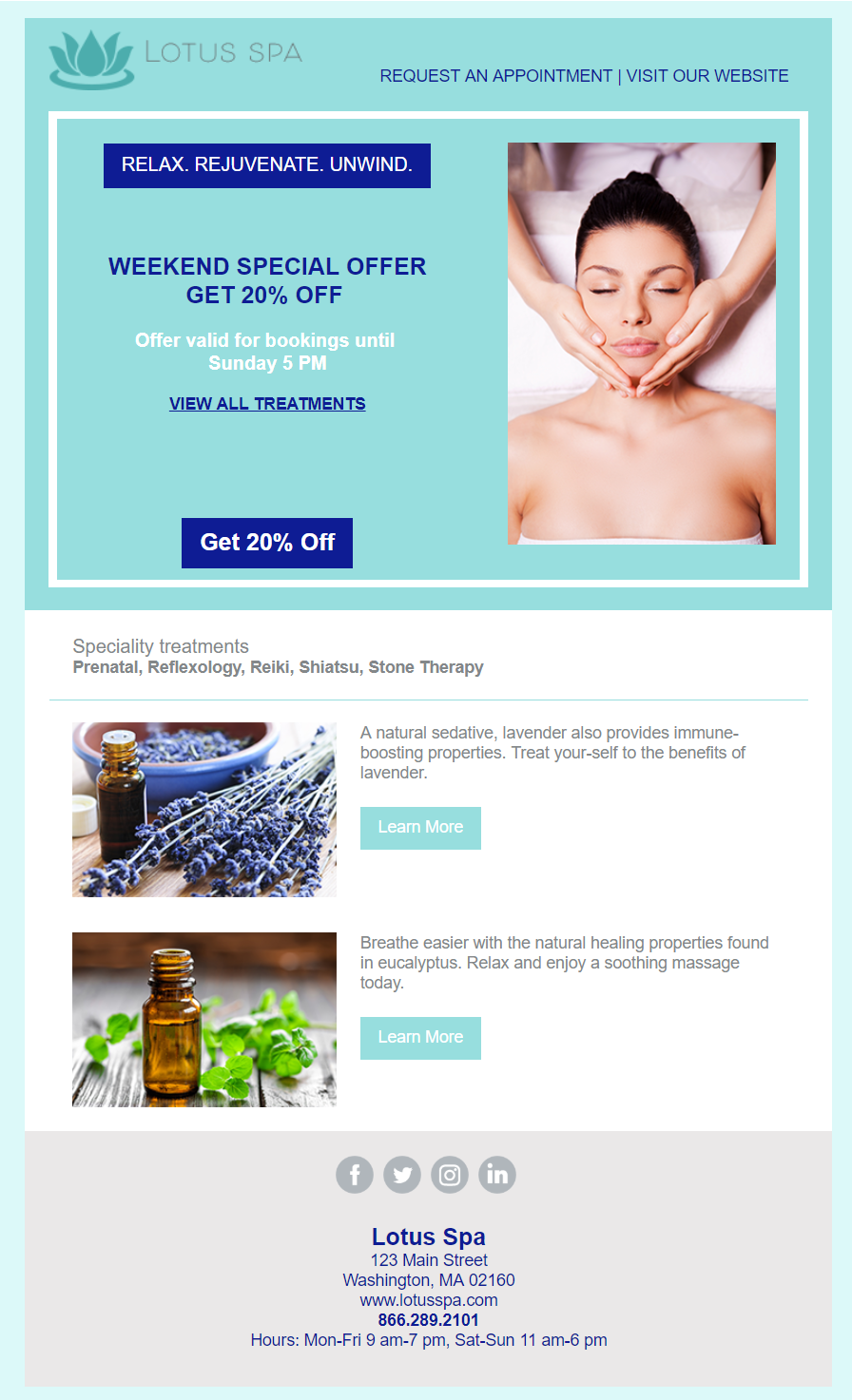 For example, let’s say you own a fitness center and have an in-house nutritionist, dietician, and personal trainers, and you want more people to book sessions with these experts. The purpose of your newsletter could be to drive people to make appointments. You could include blogs or videos by these experts talking about the benefits of their services. Or you could add discount coupons in the newsletter to encourage bookings.