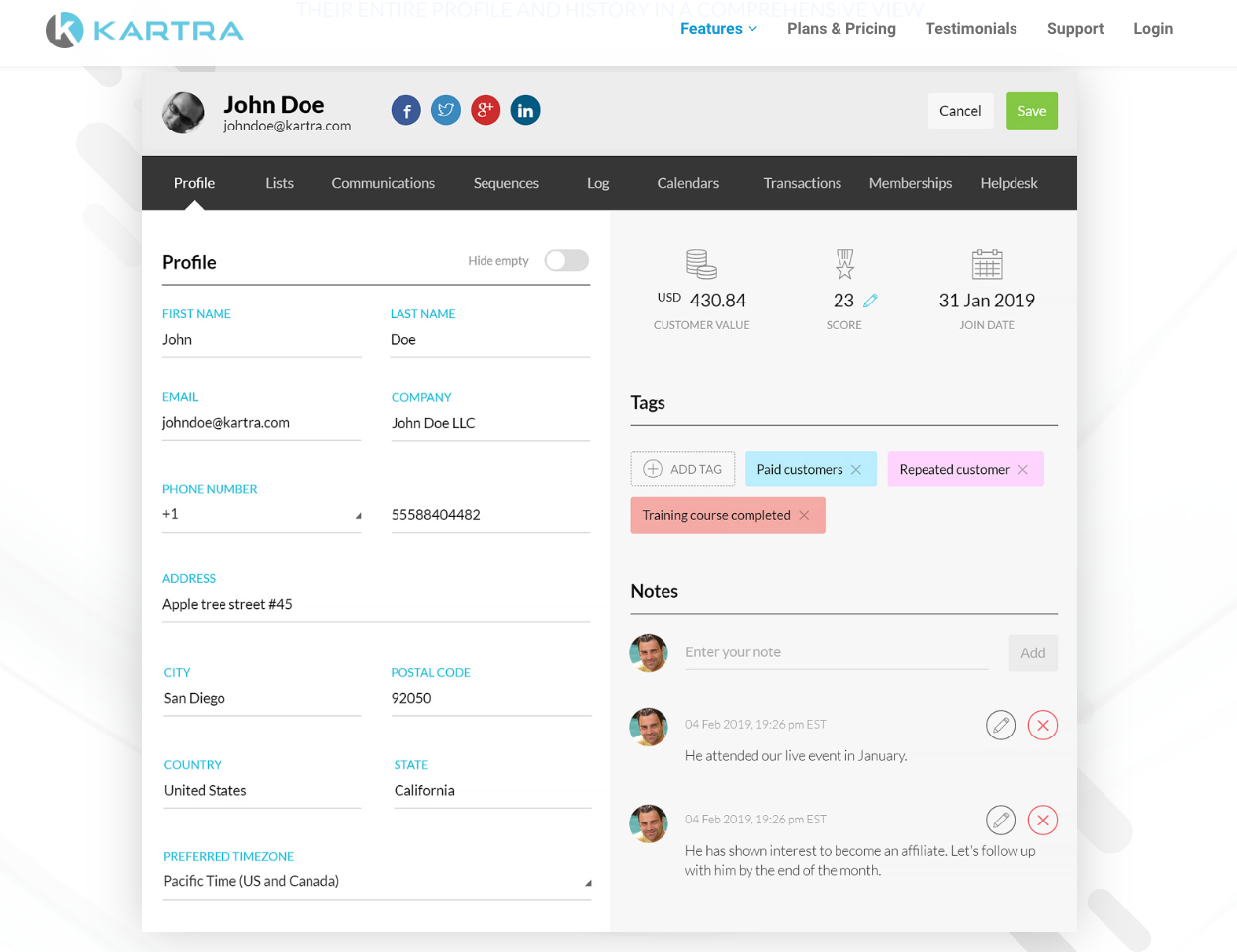 All-in-one marketing platform Kartra Leads promises to replace all other popular lead gen tools in your marketing tech stack, including ActiveCampaign, Mailchimp, and HubSpot. Kartra connects all customer data — products they’ve purchased from you, open support tickets, and emails they’ve received — into one centralized platform and gives you full visibility and control of it.