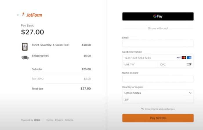 Jotform’s integration with Stripe Checkout lets you collect payments using payment forms. With Jotform’s free, customizable templates, you can tailor the payment form to match your needs and your branding.