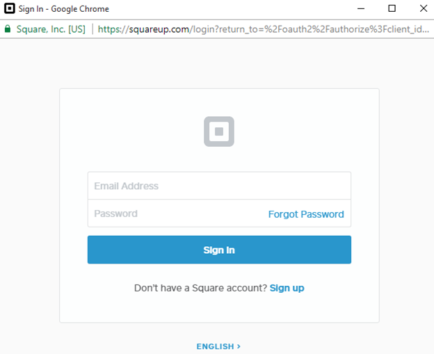 - Connect to your Square account to set up the integration. Log into your Square account in the popup window.