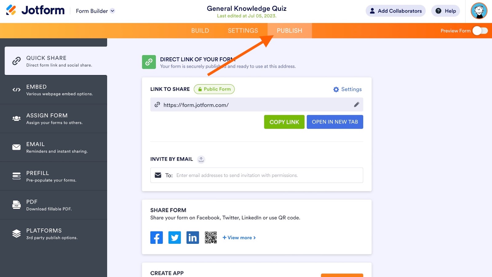 Plus, like in Google Forms, you can embed a Jotform form to any web page (in fewer steps, too) via its embed code feature: