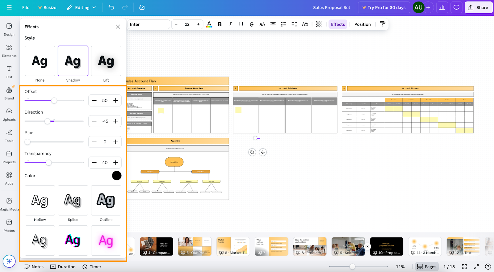 How to add drop shadows to text in Canva
