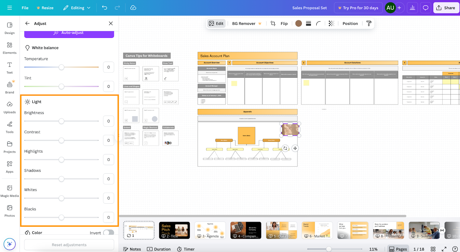- Adjust transparency and blur: Reduce transparency to between 30 and 50 percent to keep it subtle. For an even softer effect, use Canva’s blur tool available under “Edit Image.”