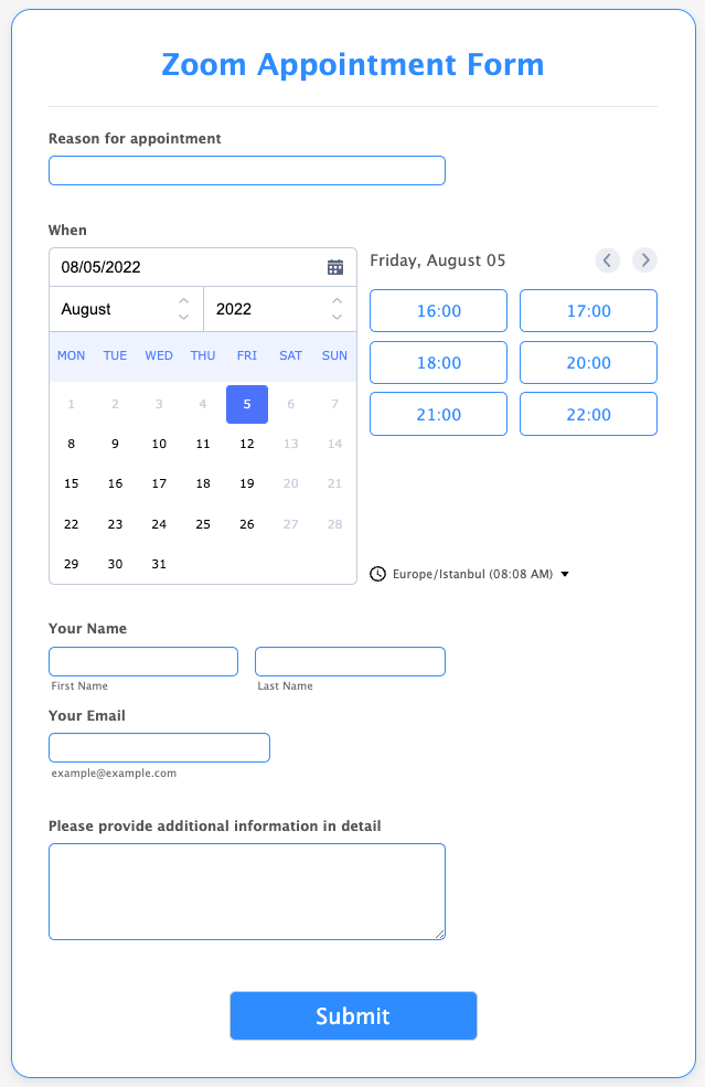 Did you know you can use Jotform to schedule events on Google Calendar or Zoom automatically? With our Form Builder, you can make an appointment form that integrates with Zoom and Google Calendar!