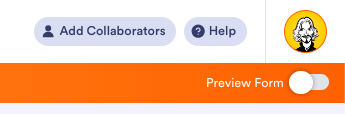 If you want to see what each collaborator is working on in the form, you can view the work happening in real time. Each collaborator’s avatar will appear on the element they are working on and the section will be highlighted in a randomly assigned color. This way, all collaborators have up-to-date details on what each person is doing in the form at all times.