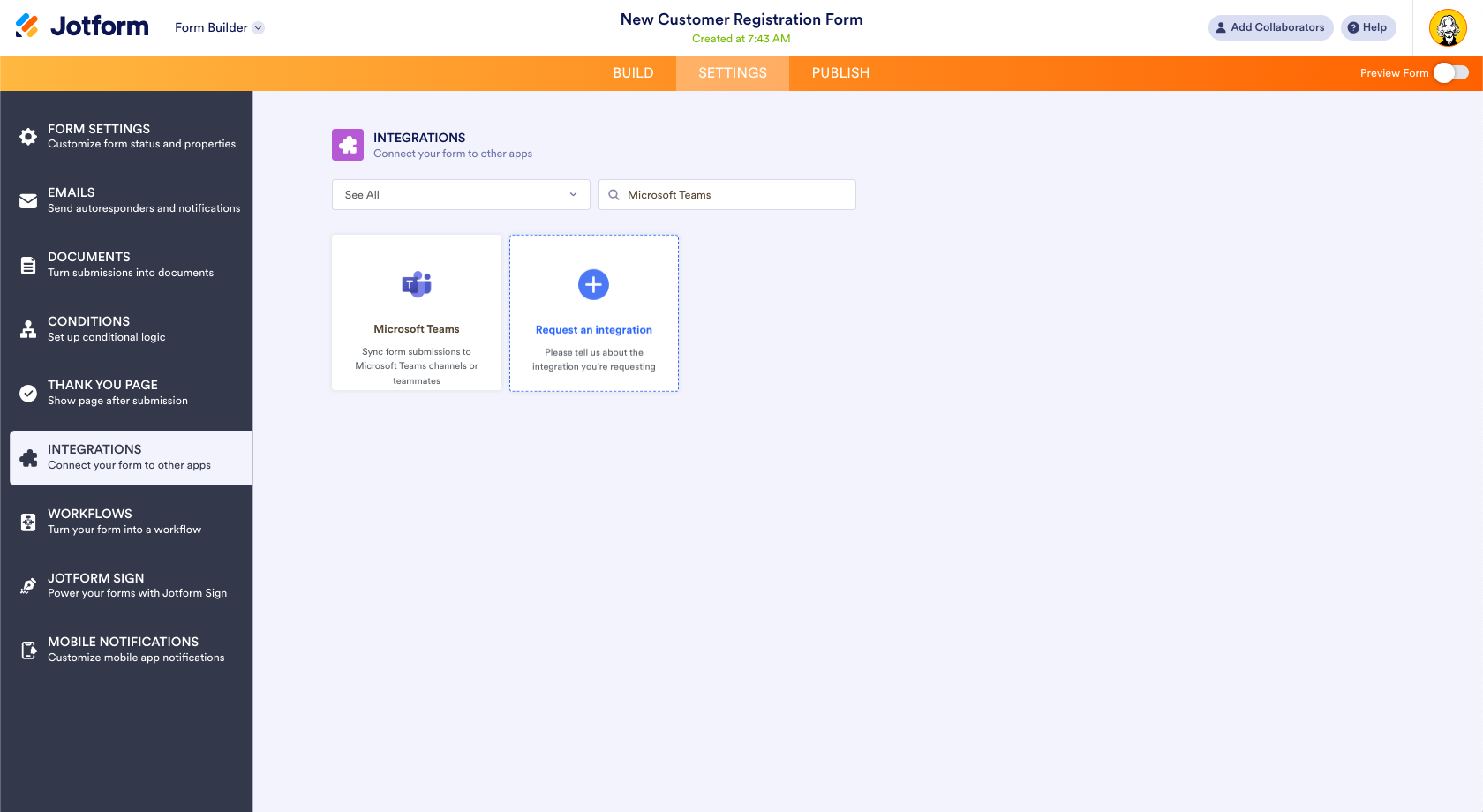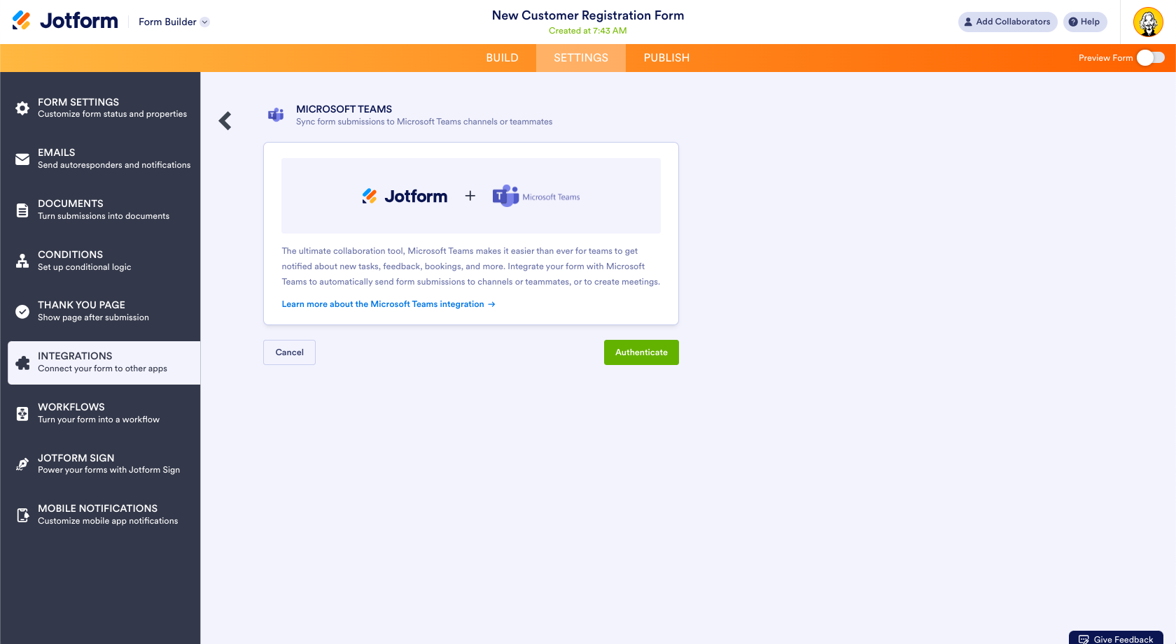 Jotform integrates directly with Microsoft Teams to further enhance your collaboration capabilities so you can create Microsoft Teams forms. With this integration, you can send form submissions to your Microsoft Teams channels, chats, and calendar. Here’s how to do it…