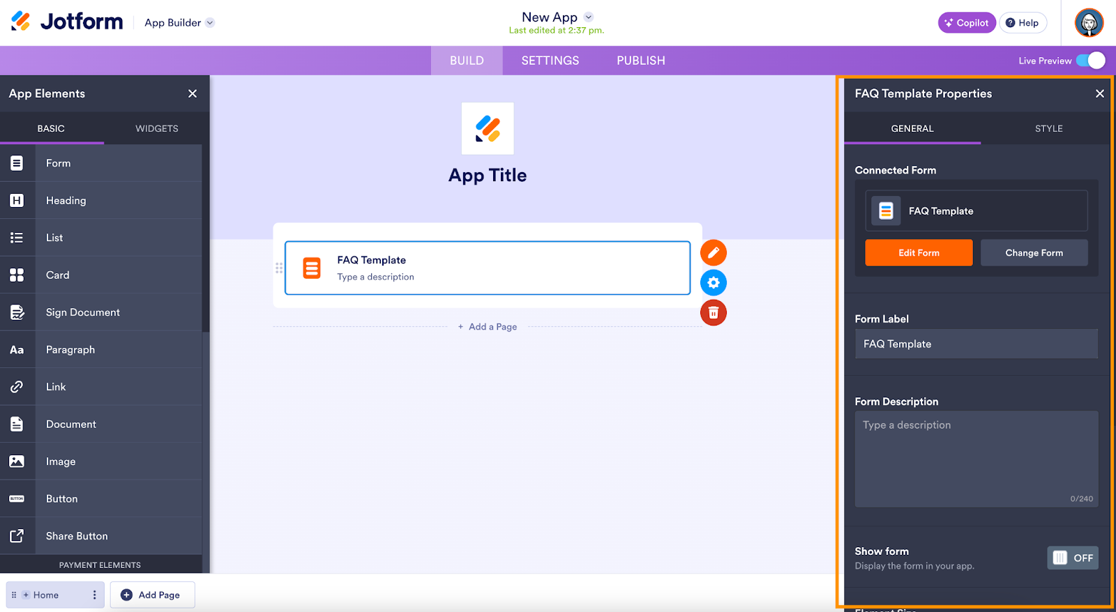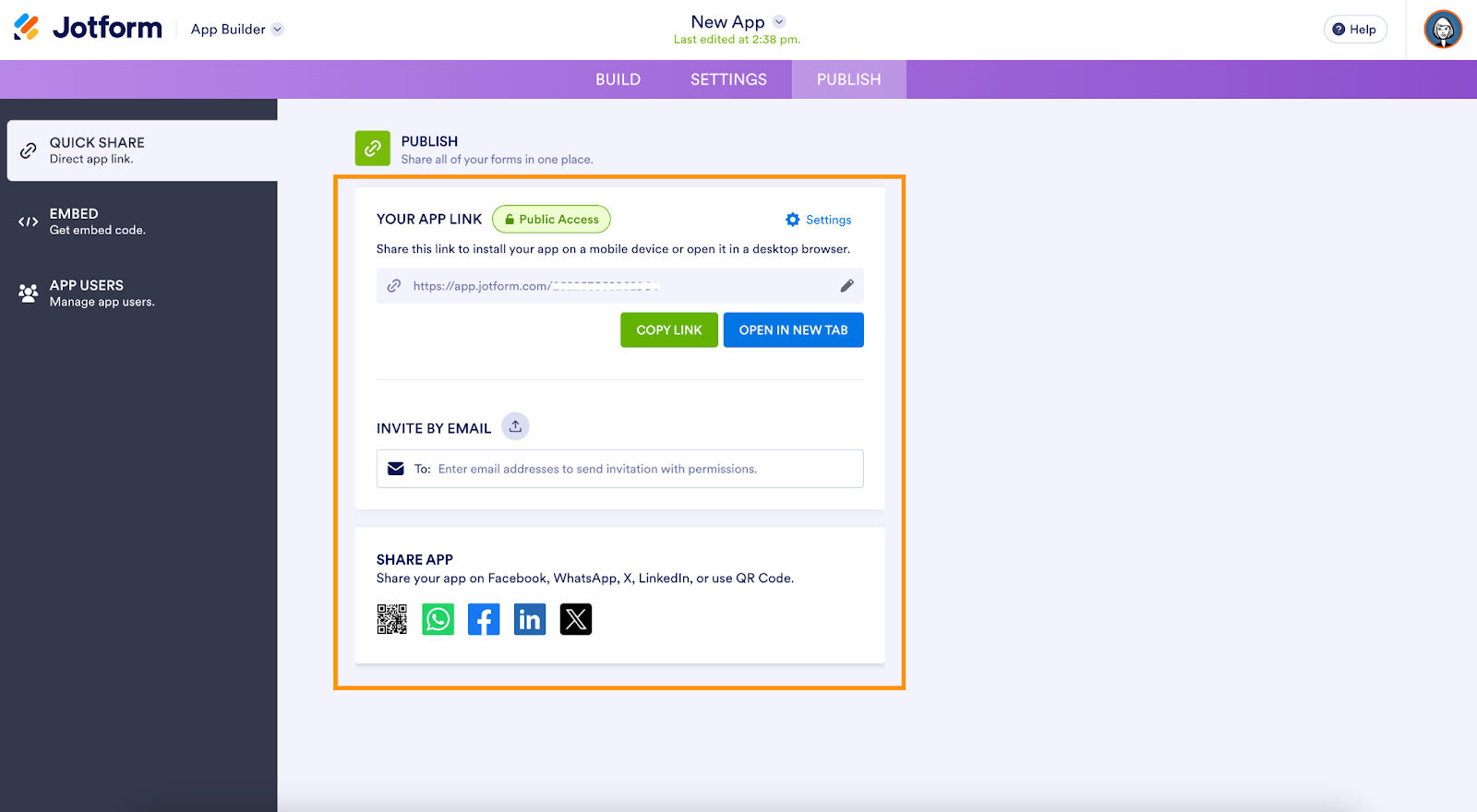 Here’s the fastest path: Build an app in Jotform Apps, add buttons that open each form your clients need, set access, and share one secure link. In minutes, you’ll publish a branded client dashboard for requests, file uploads, approvals, and status checks. There’s no coding required.