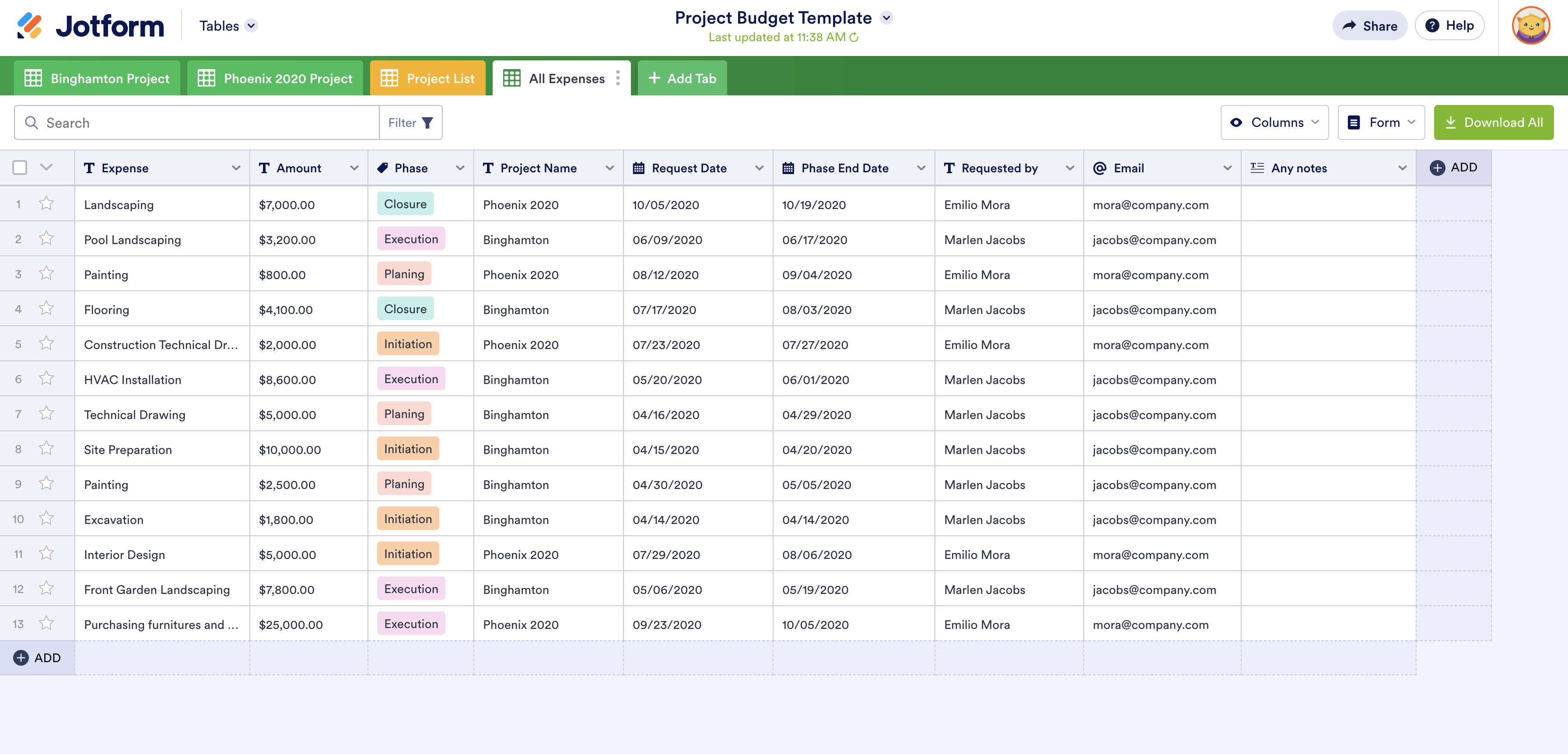 With Jotform Tables, you can add formulas that correspond with every part of your project. This way, you’ll have an easily readable budget, and you’ll be sure that every calculation is correct. What’s more, you won’t have to adjust your plans too much along the way.