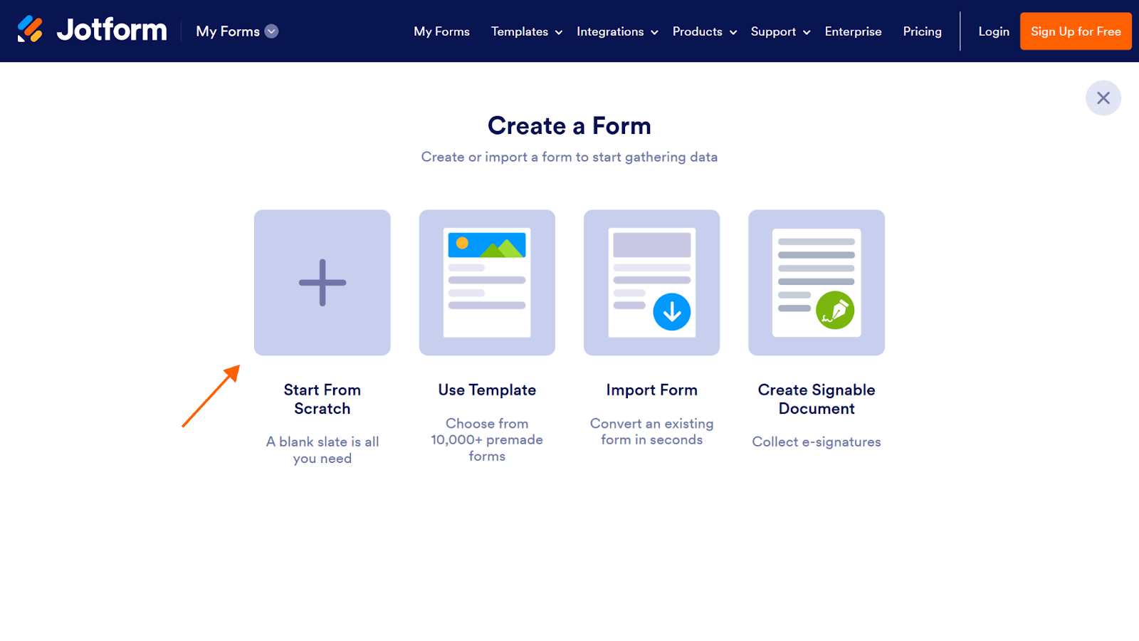 - Select Start From Scratch on the Create a Form menu.
