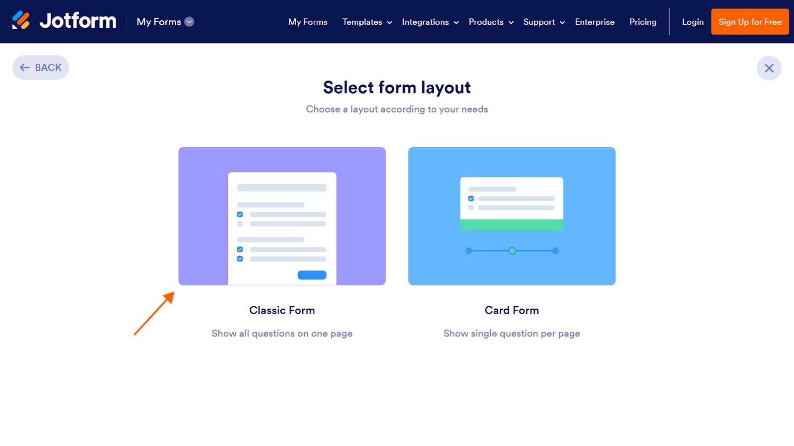 - Select Classic Form on the Select form layout menu.