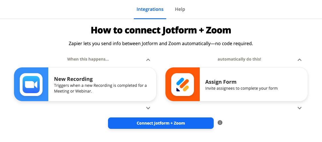 - Make sure you have both a Jotform and a Zoom account, as this will make the process much faster.