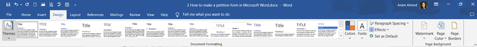 While Microsoft Word doesn’t include advanced design features, it does give you basic options for font colors, images, and layouts. Check out the Design tab to customize aspects such as the page color or page border.