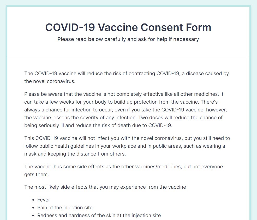 COVID-19 Vaccine Consent Form
