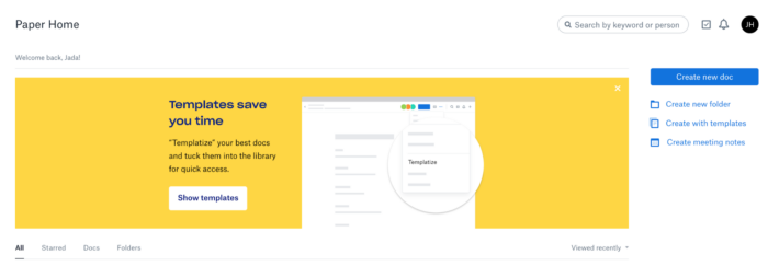 You can also use Dropbox Paper — one of their newest features — as your main document hub or “single source of truth” for your organization. It is similar to Google Drive in the sense that files can be shared and worked on within the software. For example, you can create master documents, share them with all stakeholders, and instruct them to share all updates to the right document. This makes it easy for everyone to see where a project or task is.